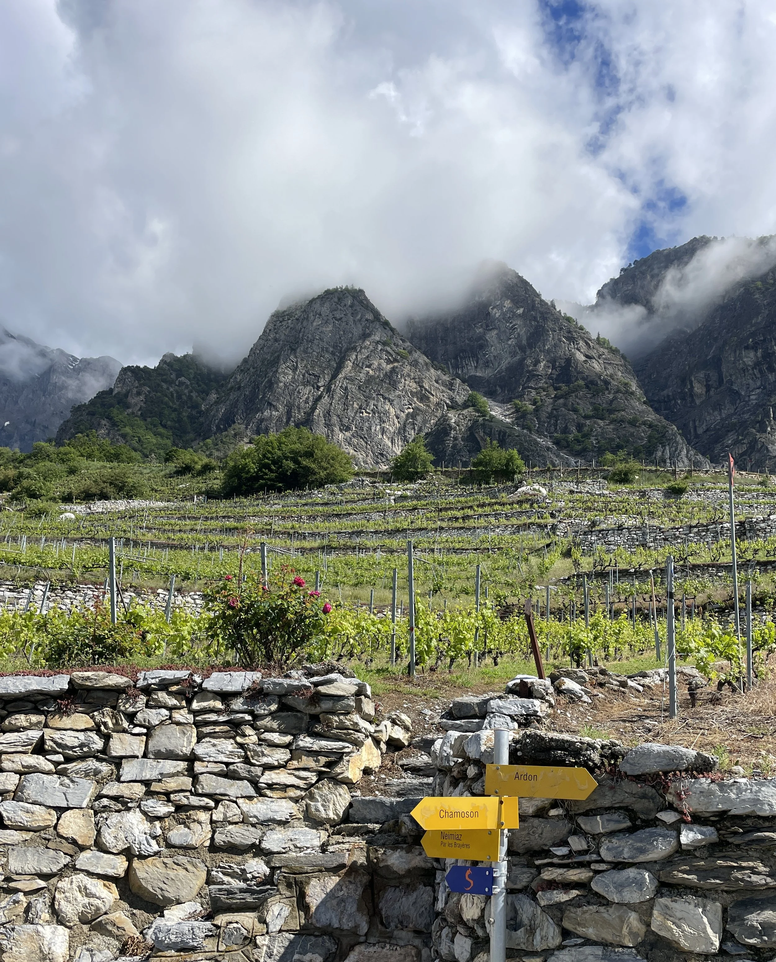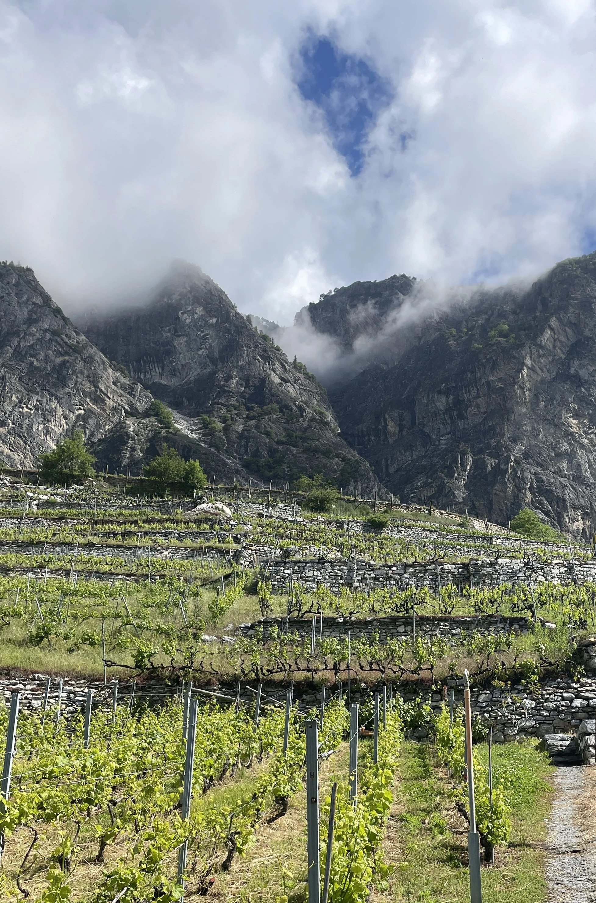 The Micro plots are lovely , scattered down the stepped terraces of chamoson , some super small with just around 100 vines , tire bouchon style which is common in the valley , pruned a certain way that the vine cover decades resemble cork screws.
