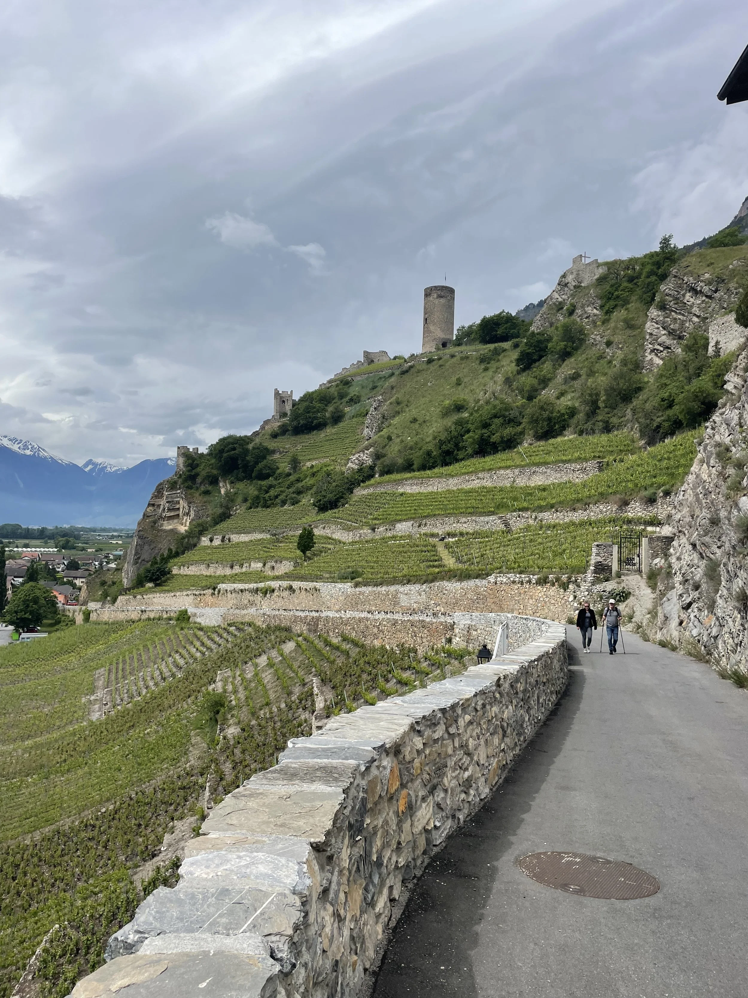 The first Vinegrons to practice biodynamic methods in the Valais , the domaine has been biodynamic since 1993 , and is nestled upon a ledge 200 meters above the Valais floor . only way up is a good tough couple of hour hike.