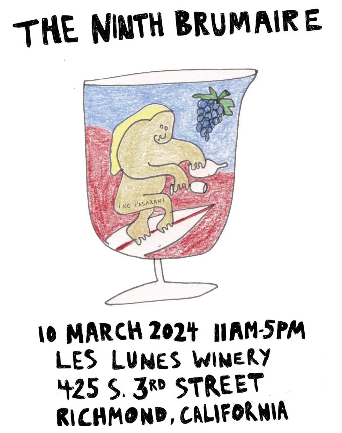 BRUMAIRE Sunday 10 March 2024 11:05 17:00 Les Lunes Winery, 425 S. 3rd Street, 94804 RICHMOND (map) Google Calendar ICS