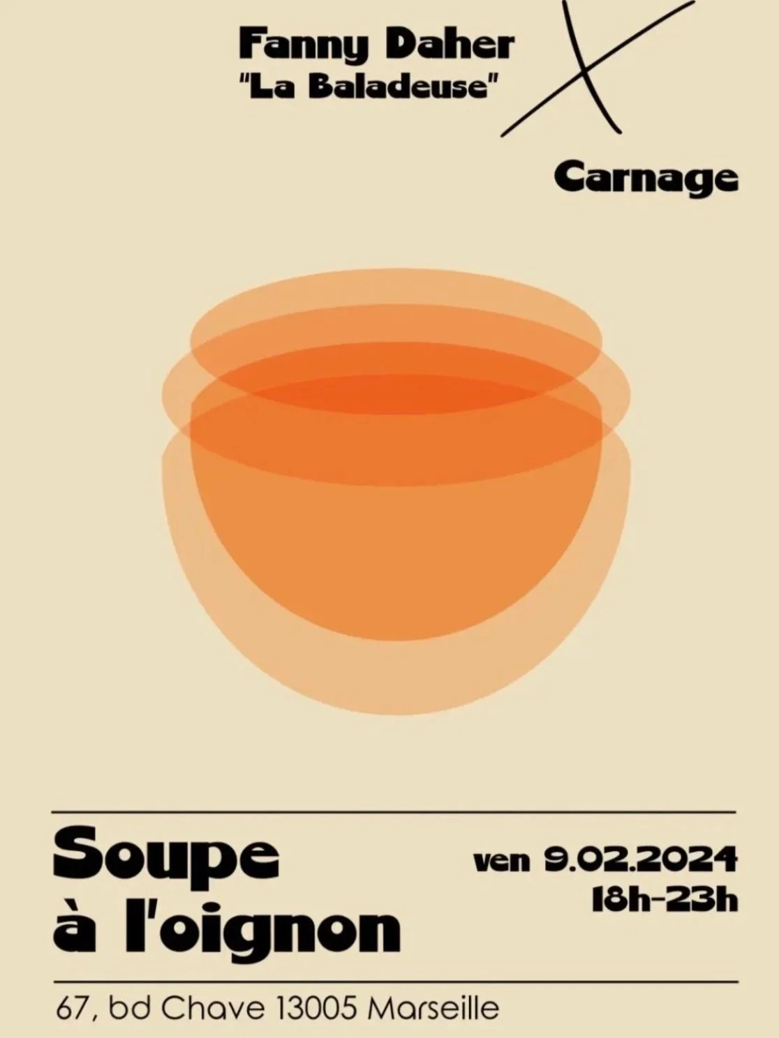Soupe a la oignon Friday 9 February 2024 18:12 23:00 67 Boulevard Chave Marseille, Provence-Alpes-Côte d'Azur, 13005 France (map) Google Calendar ICS